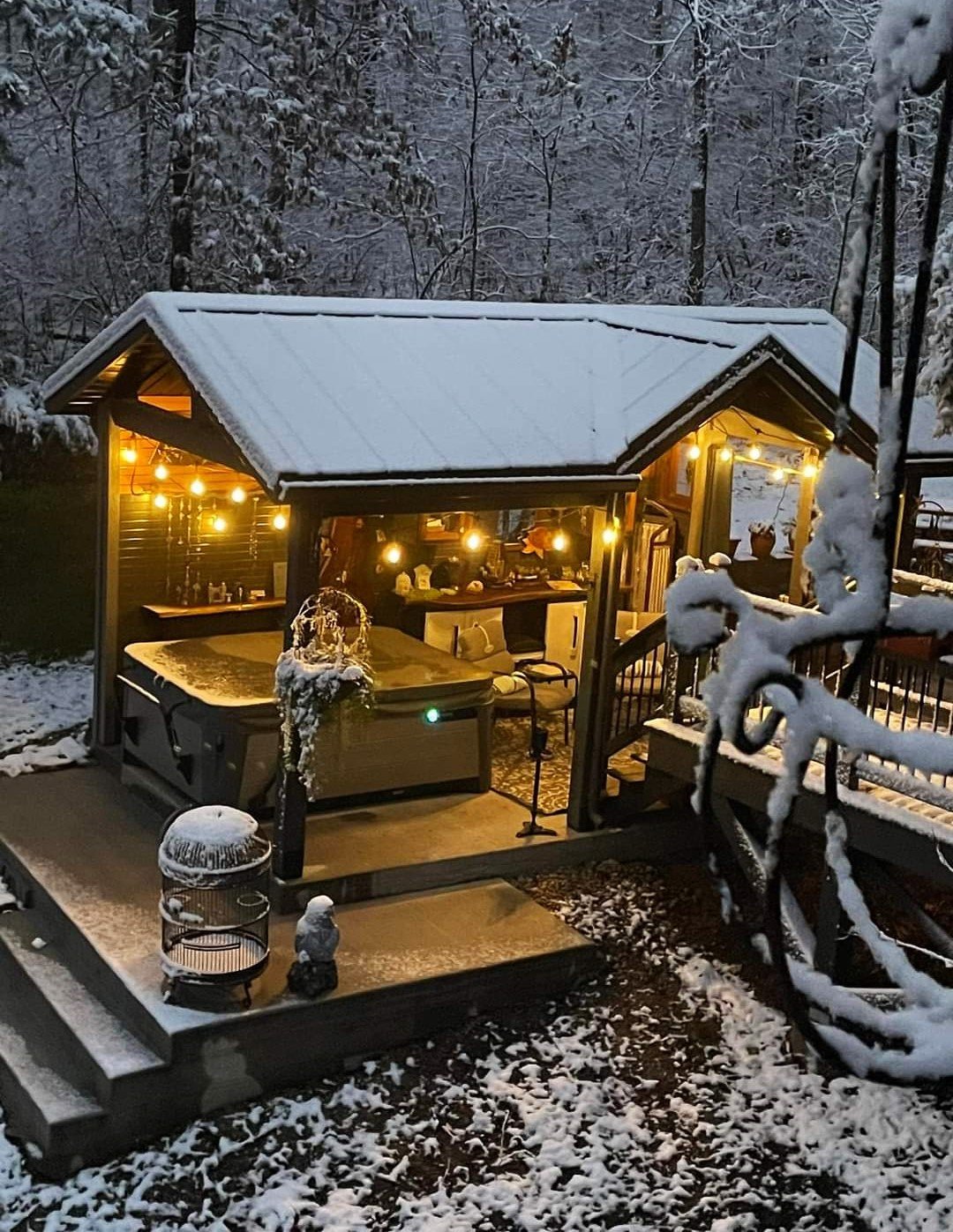 Enjoy three elevated treetop decks, each softly illuminated with dimmable lighting to set the perfect mood. Settle into plush lounge chairs with cozy cushions, lounger pillows, and—when the air turns crisp—warm heated blankets that make every moment feel extra snuggly and magical.